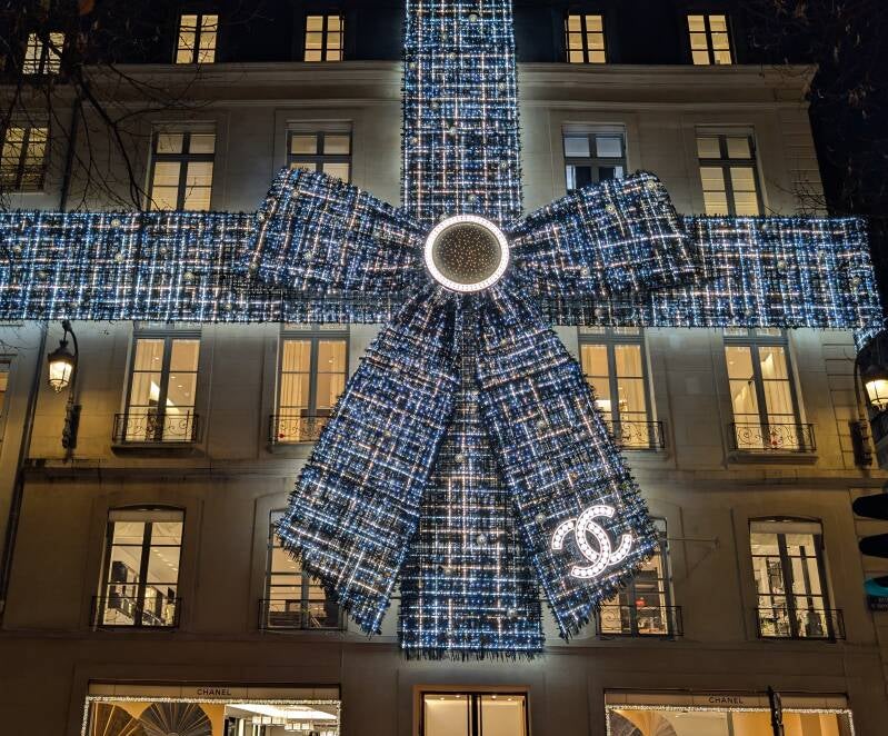 La rue Saint-Honoré est parfaite pour prolonger la magie. Entre boutiques historiques et grandes maisons de mode, les vitrines de Noël y sont raffinées et inspirantes.